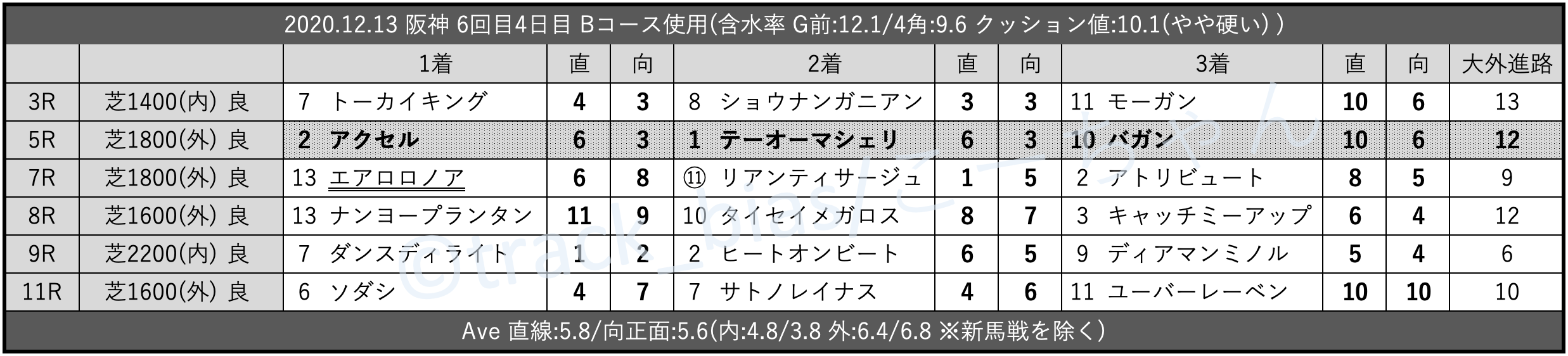 變券 トラックバイアス【先週の馬場傾向12/12,13 中山/阪神/中京】