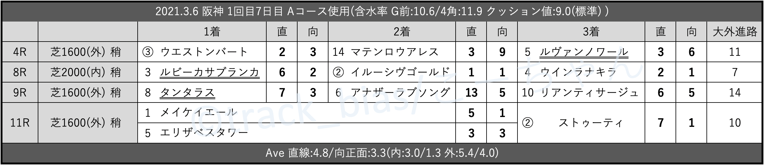 變券 トラックバイアス【昨日の馬場傾向 3/6 中山/阪神/小倉】