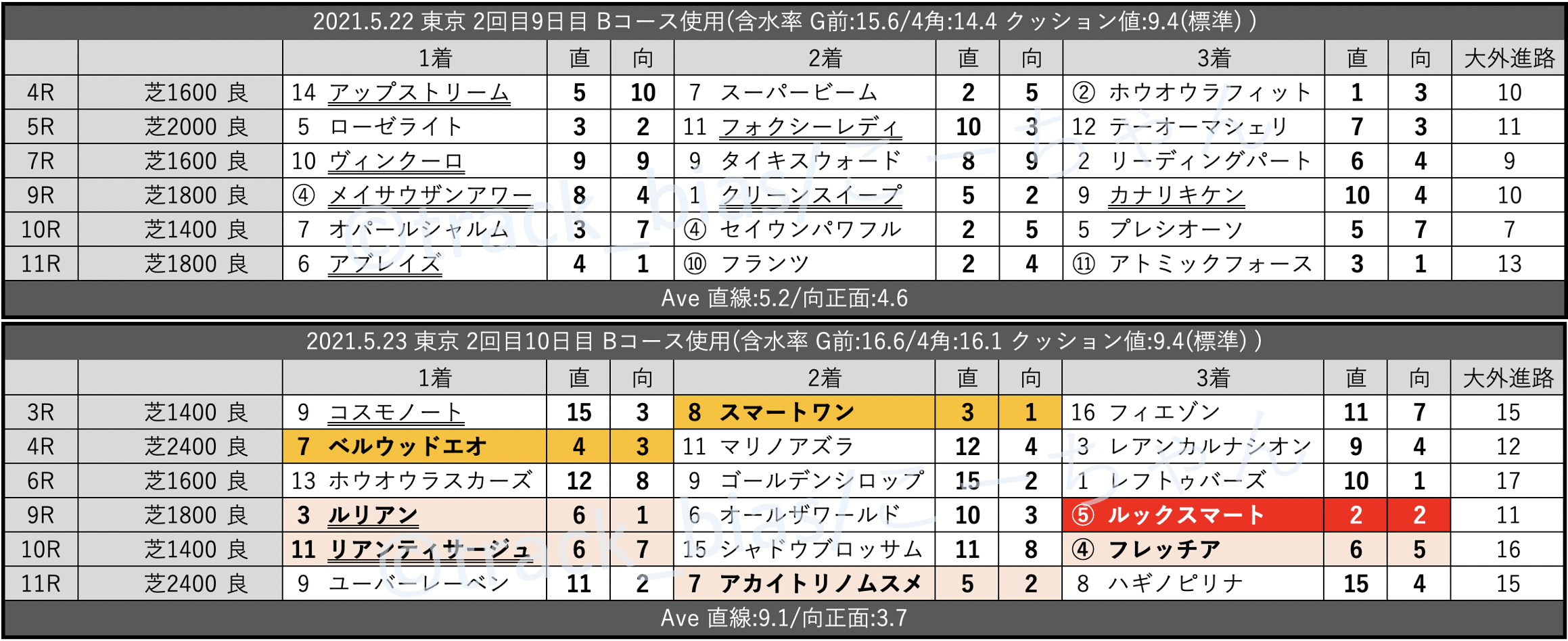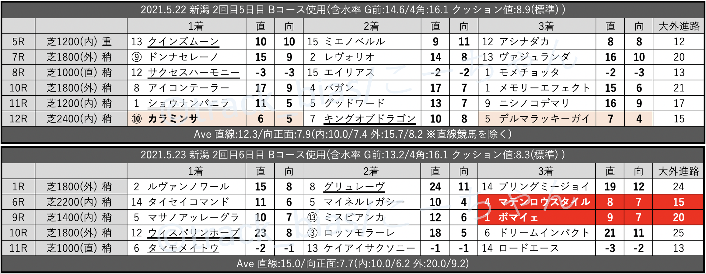 變券 トラックバイアス【先週の馬場傾向 5/22,23 東京/中京/新潟】
