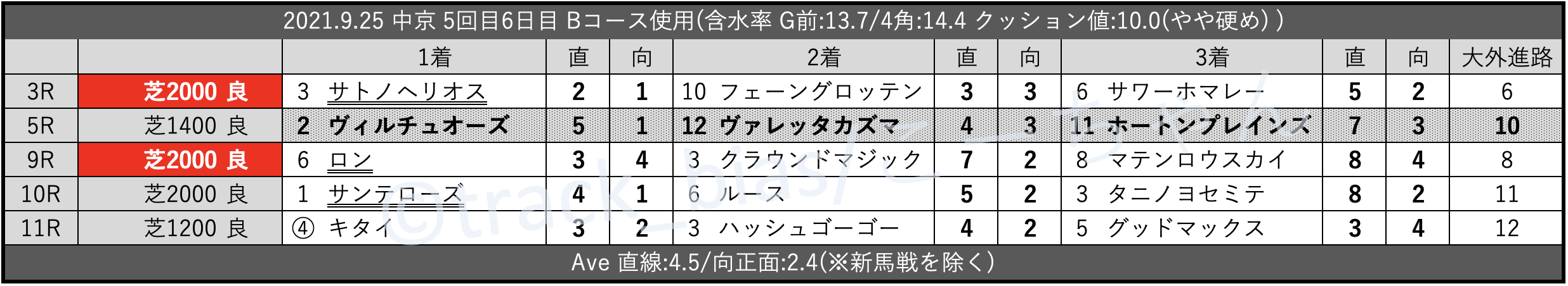 變券 トラックバイアス【昨日の馬場傾向 9/25 中山/中京】