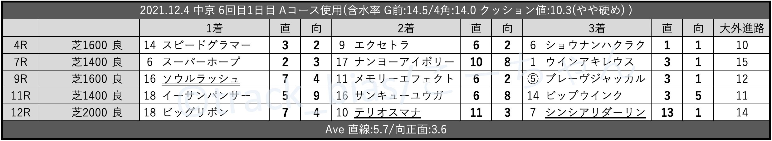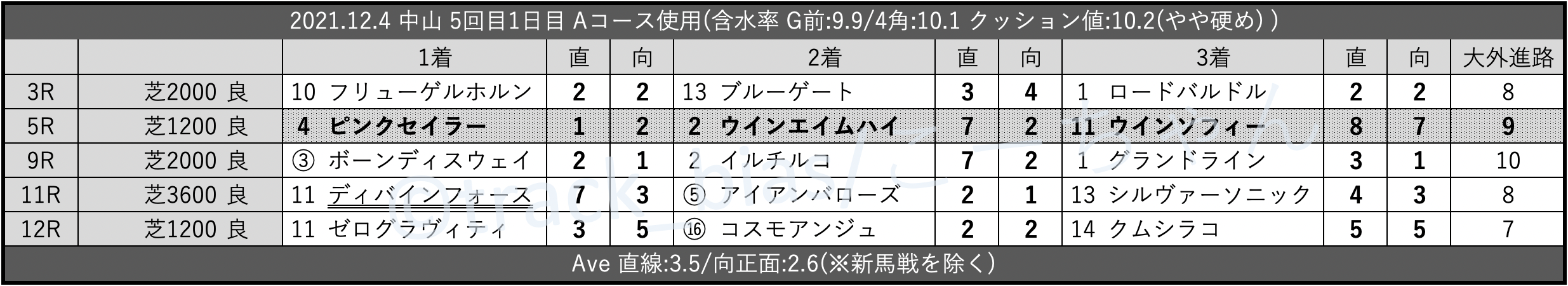 變券 トラックバイアス【昨日の馬場傾向 12/4 中山/阪神/中京】