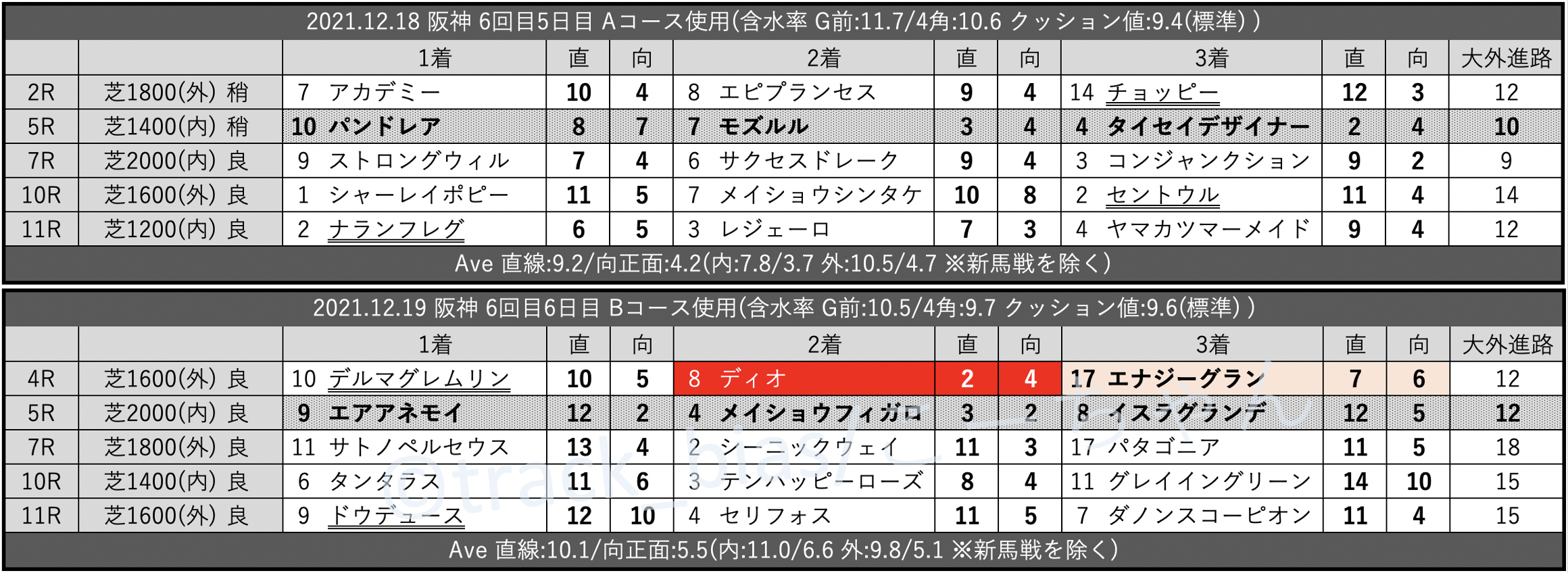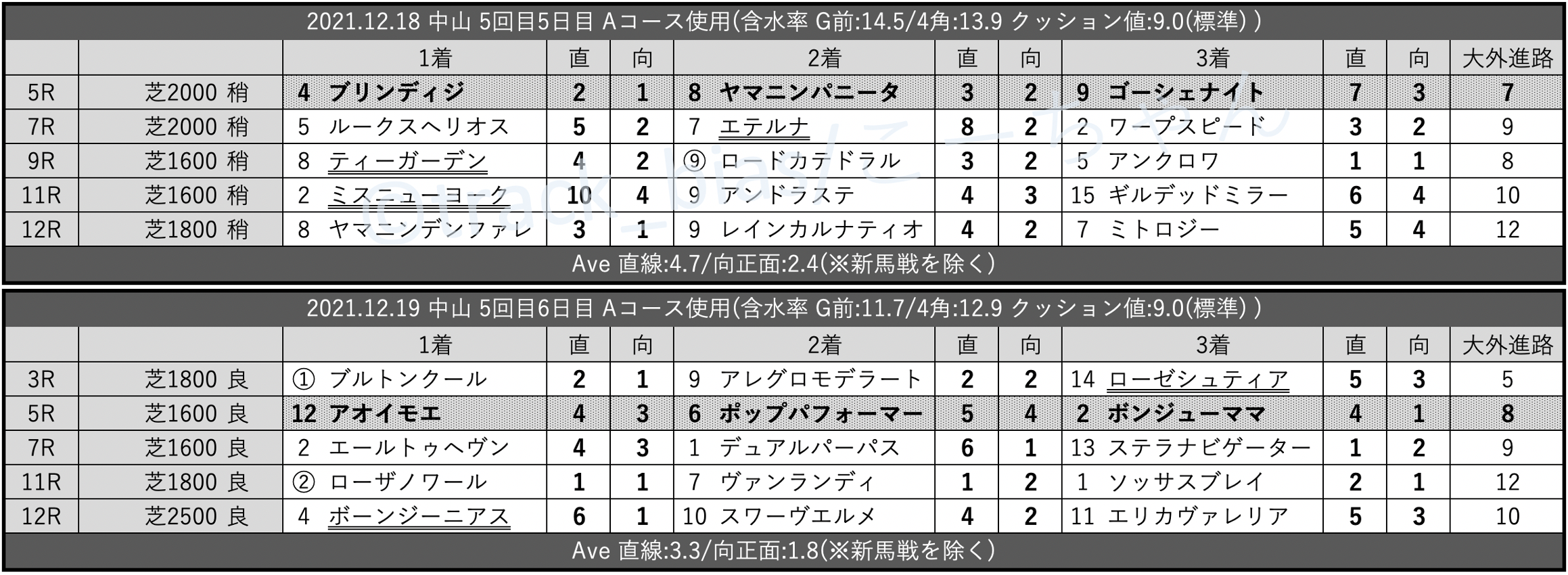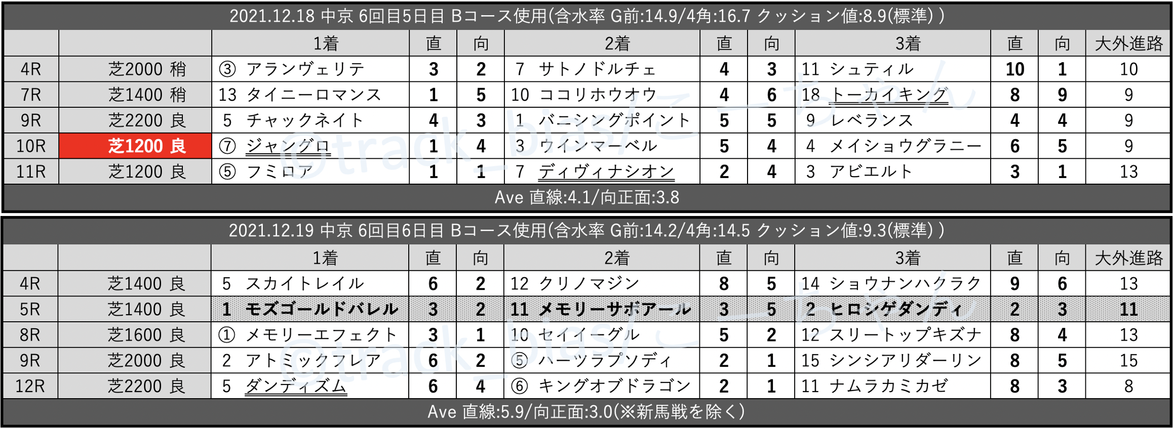變券 トラックバイアス【先週の馬場傾向 12/18,19 中山/阪神/中京】