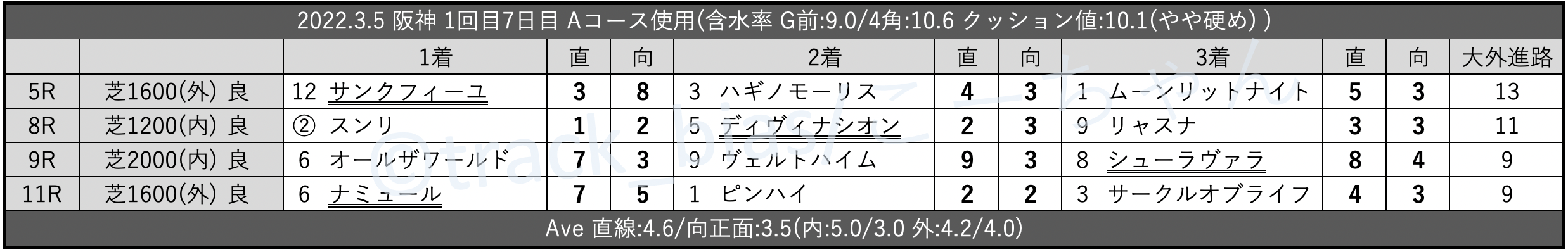 變券 トラックバイアス【昨日の馬場傾向 3/5 中山/阪神】