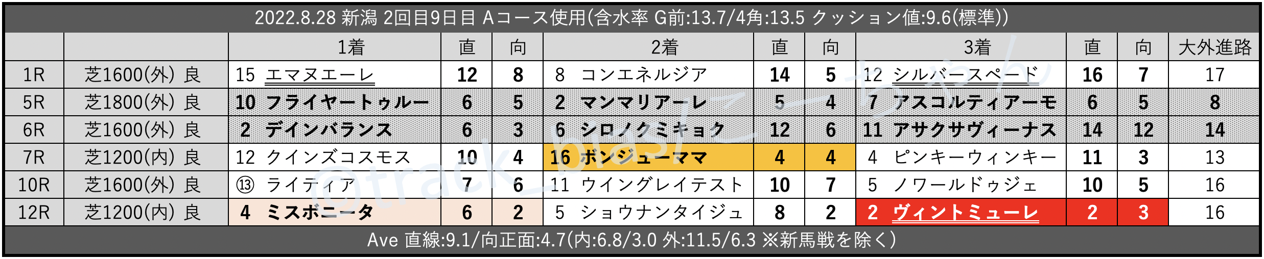 【昨日の馬場傾向/新潟】