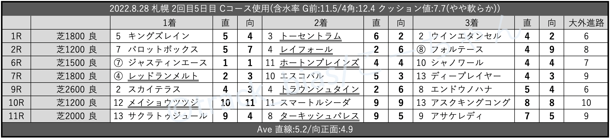 【昨日の馬場傾向/札幌】