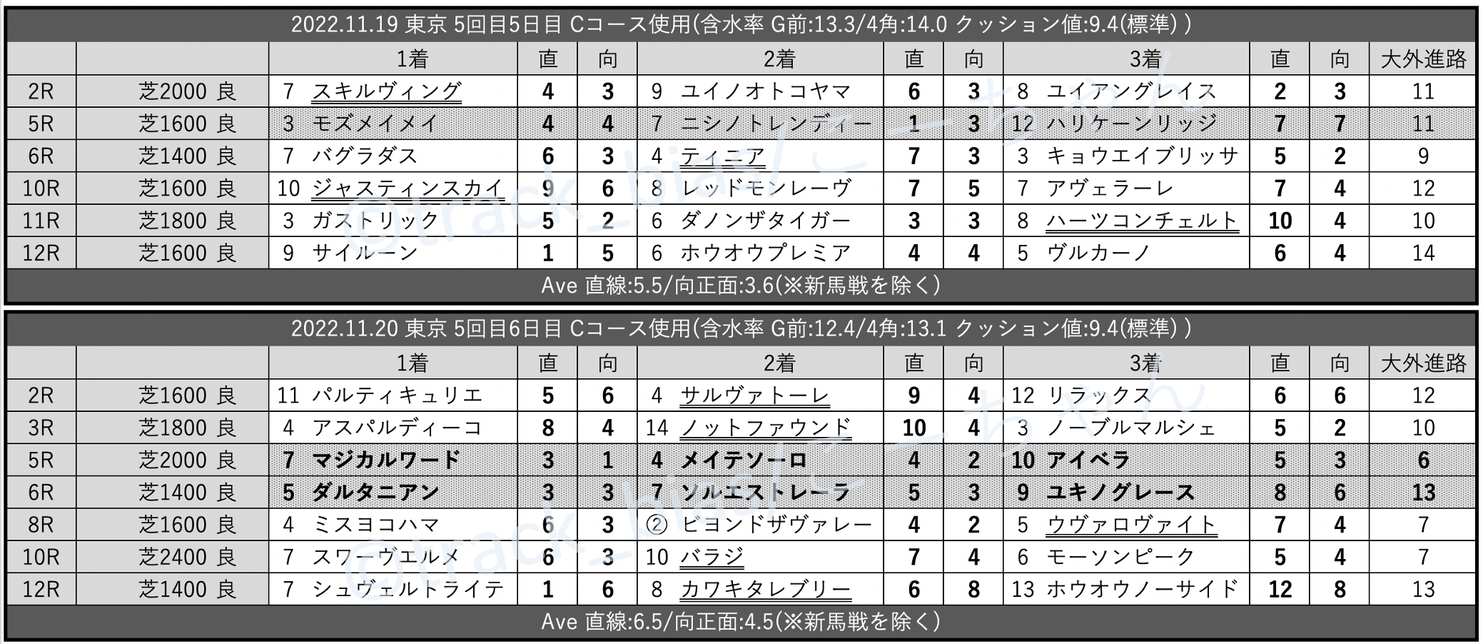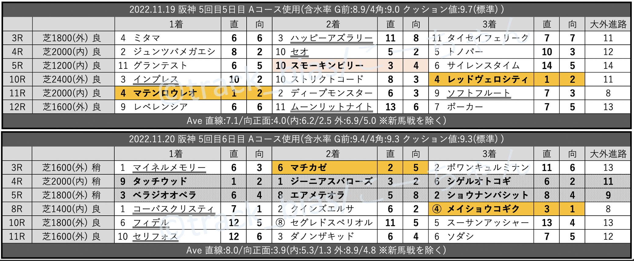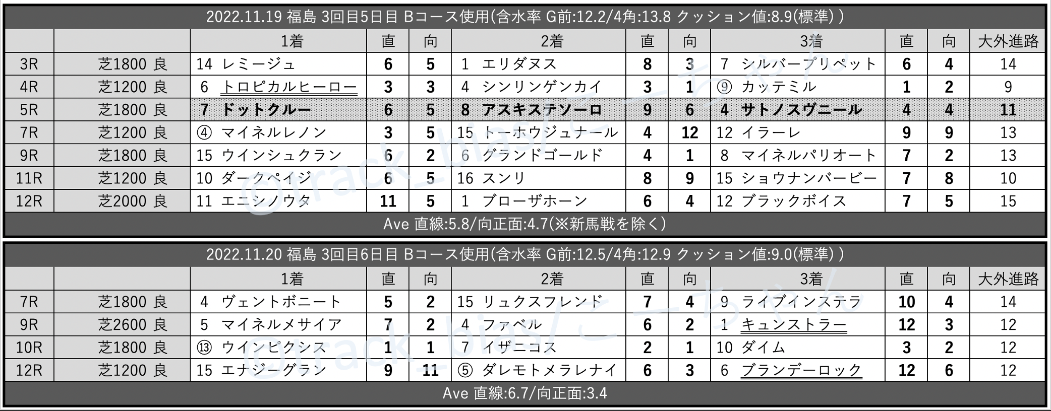 先週のtrack_bias 馬場傾向