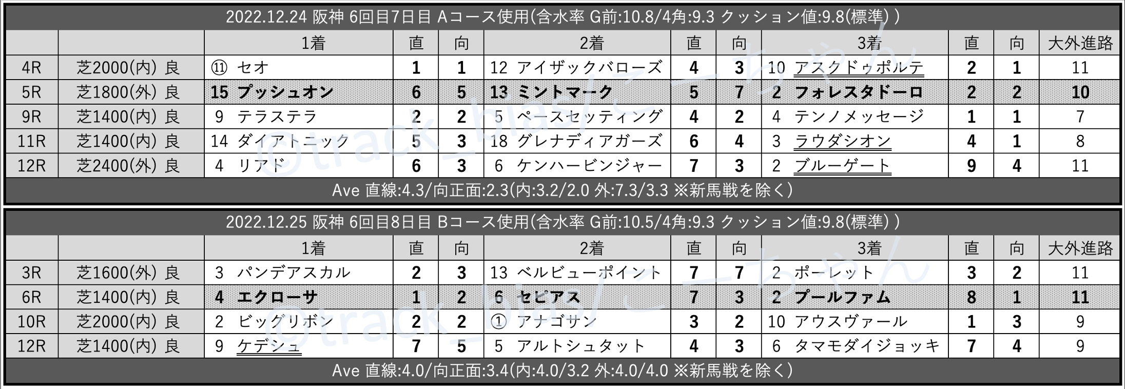 先週のtrack_bias 馬場傾向