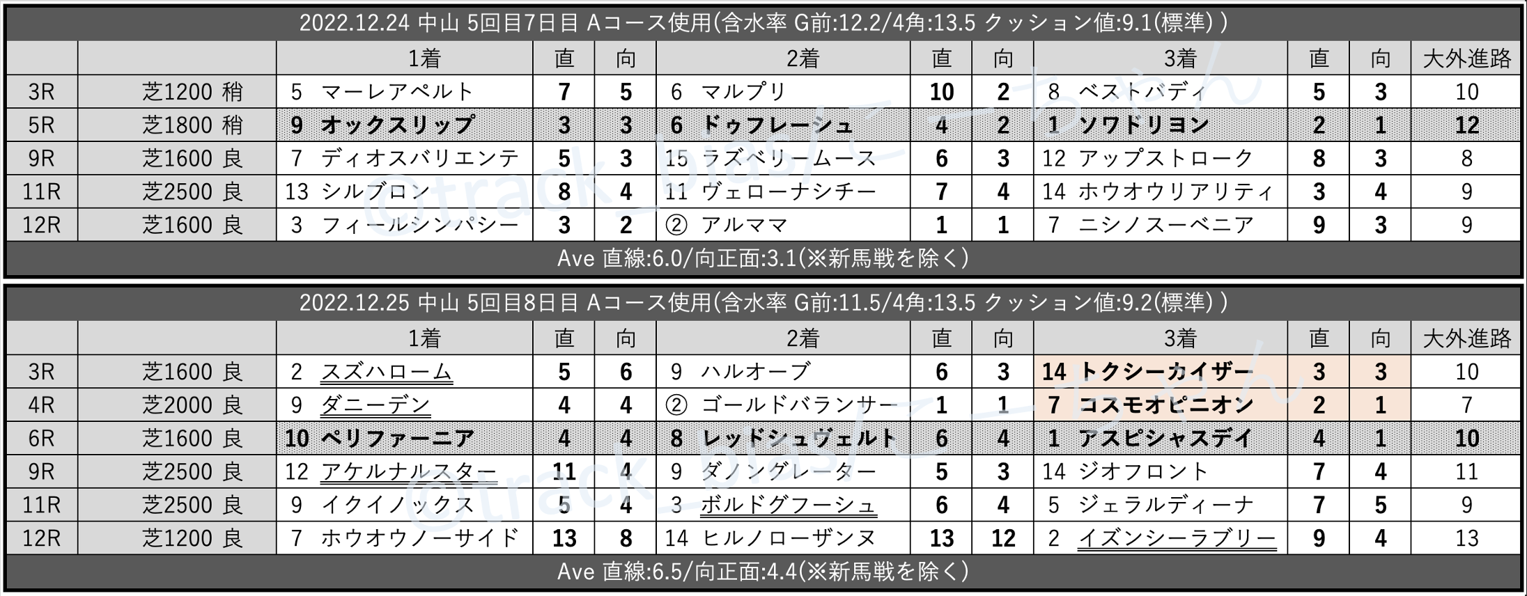 變券 トラックバイアス【先週の馬場傾向 12/24,25中山/阪神】