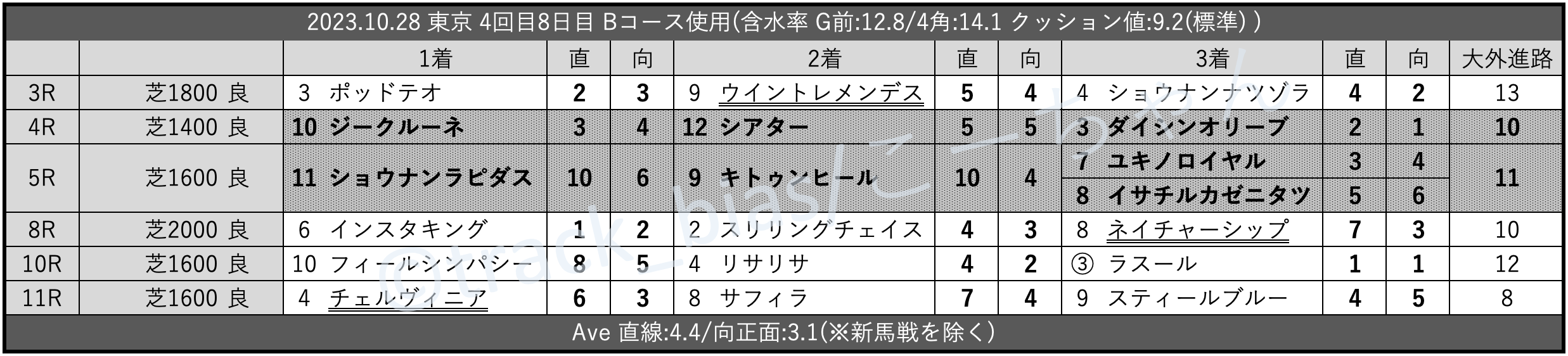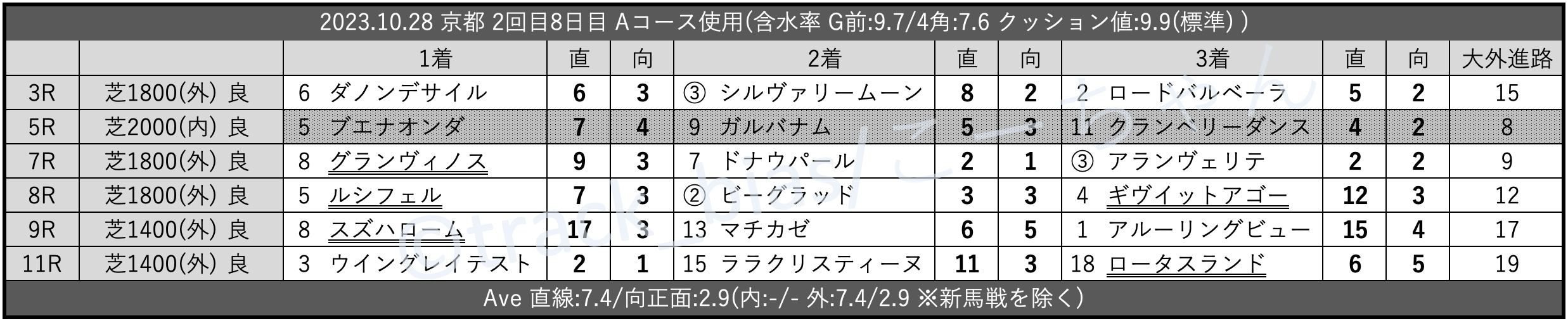 昨日のtrack_bias 馬場傾向
